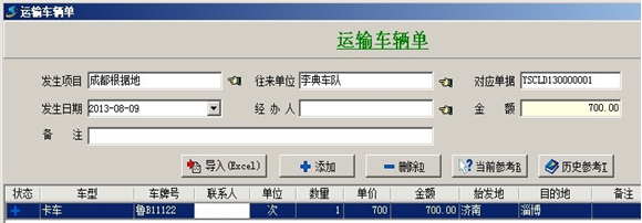 2. 【運輸車輛成本】一般用于統計公司租賃車輛周轉材料所產生的成本,成本根據運輸車輛單來統計。