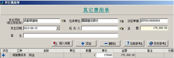 在金石工程項目管理軟件中,其他成本是根據其他費用單得出,其他成本的內容(其他費用單中的內容)是根據軟件基礎信息中費用科目維護來調用。