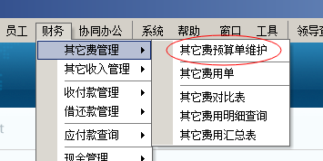 其他費(fèi)用預(yù)算單,在工程項目管理軟件在財務(wù)菜單中第一項【其他費(fèi)管理】,【其他費(fèi)預(yù)算維護(hù)】中創(chuàng)建。
