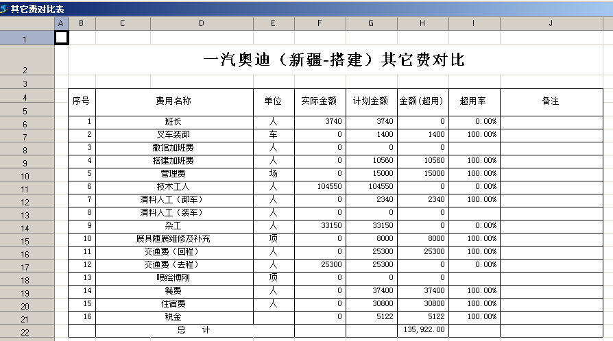 四、預(yù)算與實際對比