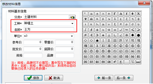 在材料維護(hù)中維護(hù)好相應(yīng)材料的工種名稱(chēng)中帶有“砂石料”或“種植土”三個(gè)字