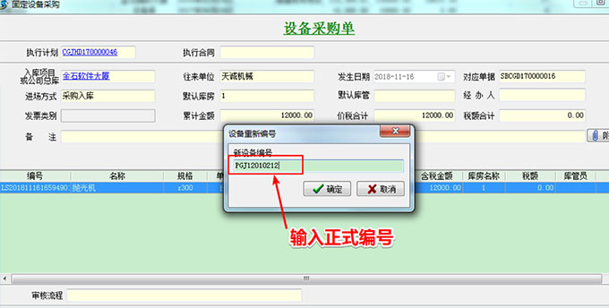 當(dāng)設(shè)備參與項目使用后,可以生成正式編號,以便長期使用。