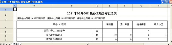 點(diǎn)擊上圖統(tǒng)計分布結(jié)果,即可出現(xiàn)詳細(xì)信息,設(shè)備各個工地的分布情況(包括新采購和設(shè)備累計數(shù)量)。