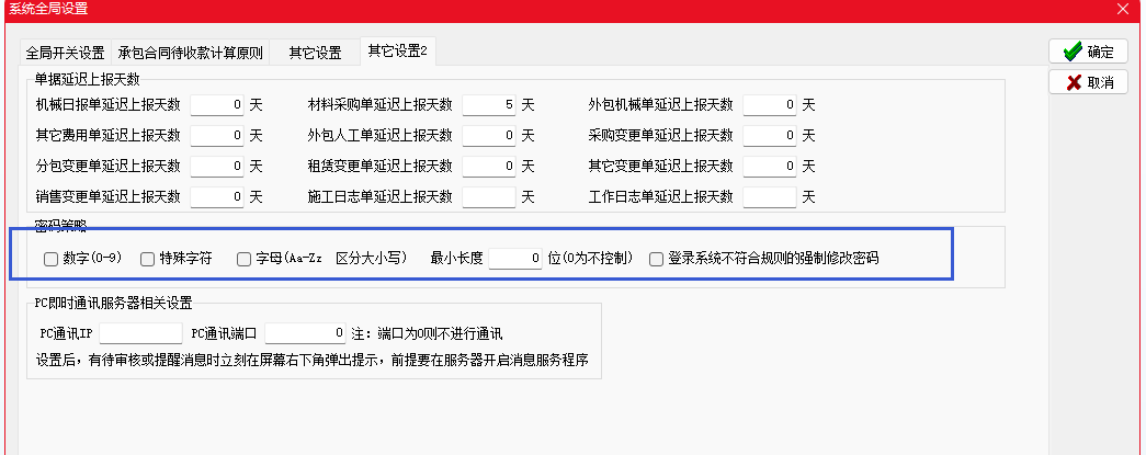 金石工程項目管理軟件可以自定義密碼策略,限制設(shè)置密碼的形式。