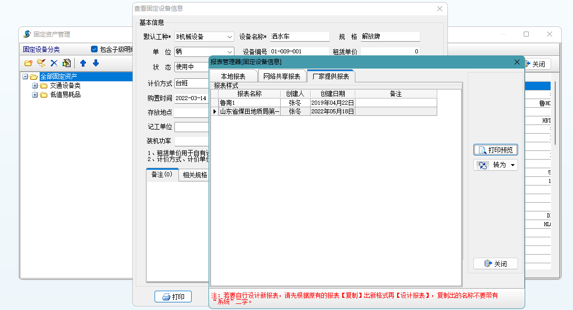 具體操作:在設備維護中選擇設備點擊打印,根據設計的報表樣式生成打印預覽