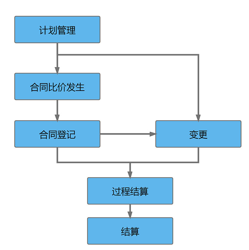 金石工程項目管理軟件以采購管理為出發(fā)點:首先對項目進(jìn)行合同分析,控制所有建設(shè)項目的管理;采購管理本身由合同建立、審查、預(yù)警、清算、付款、變更、披露等組成。它們構(gòu)成了項目的合同管理子系統(tǒng)。