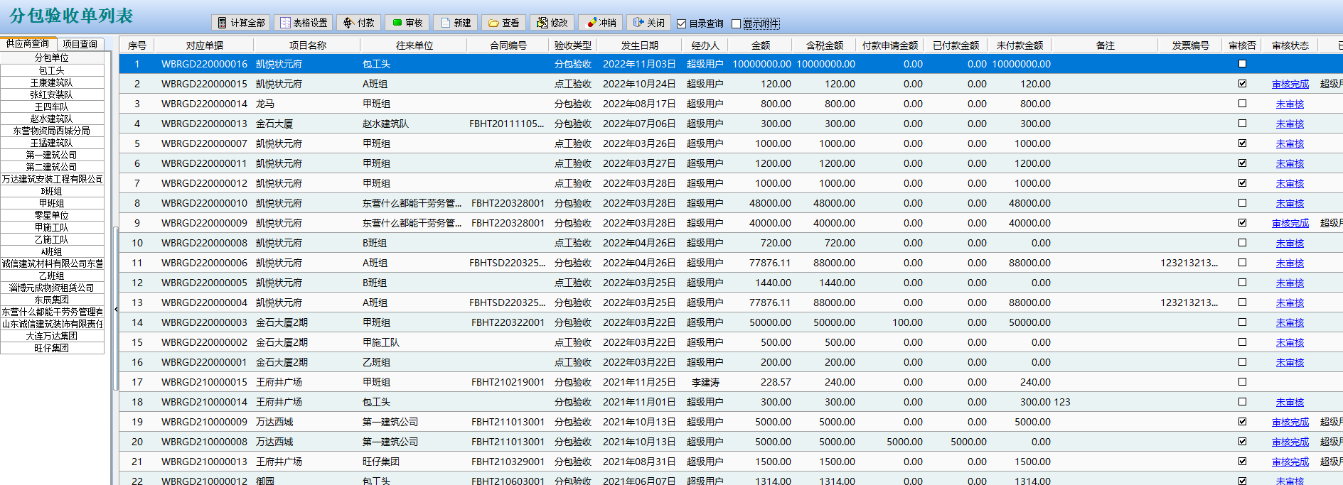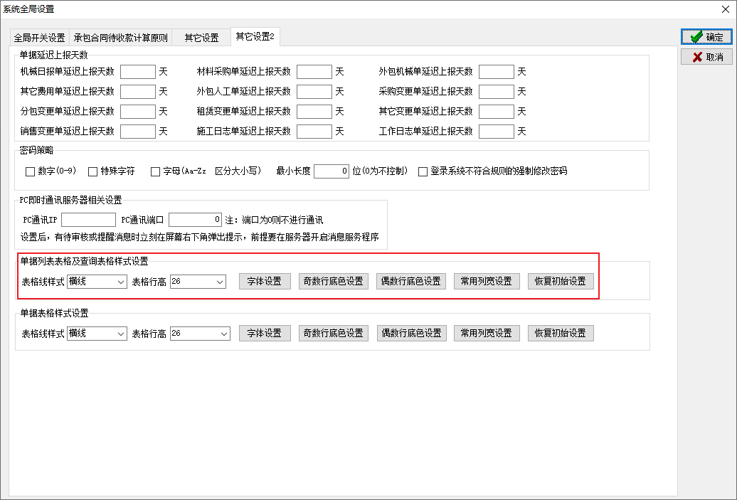 金石工程管理軟件新增單據列表表格及查詢表格樣式設置