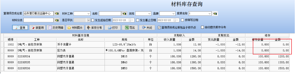 最后點擊保存按鈕,此時我們再去庫存查詢中查看結(jié)余情況,如下圖所示,會發(fā)票金額歸零。