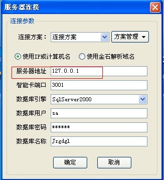 服務器連接設置中,服務器默認地址為:127.0.0.1 。