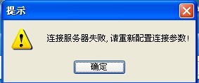 故障一、新裝客戶端無法訪問服務器,彈出錯誤提示:“連接服務器失敗,請重新配置連接參數”:如下圖: