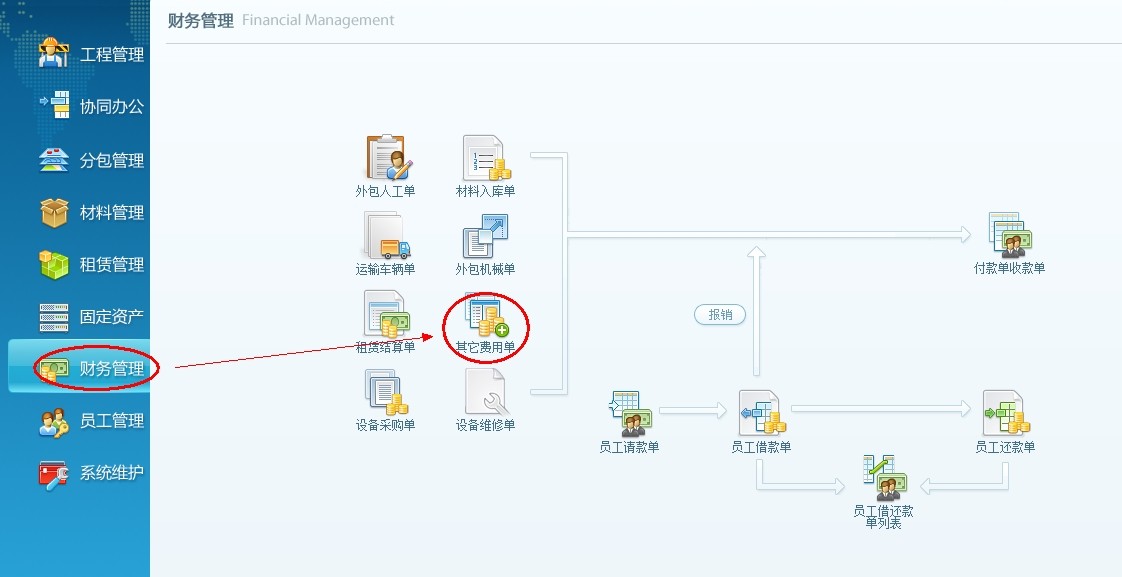 投標項目的費用錄入流程:導航欄財務管理---其它費用單---付款單