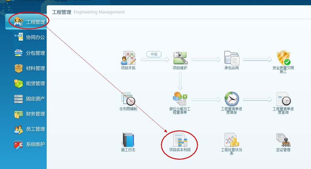 點擊導航欄工程管理-----項目成本利潤
