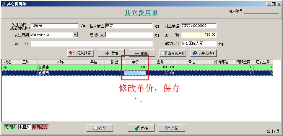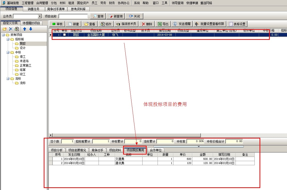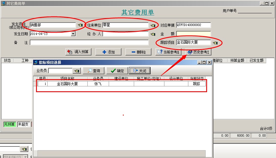2、投標之前發生的費用,可以錄入【其它費用單】