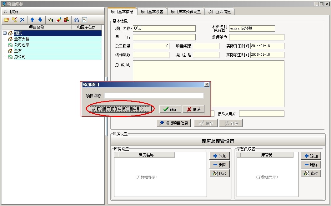 (2)打開項目維護,新建項目,選擇從項目開拓引入項目,投標項目發生的費用會一并帶入到新建立的項目。