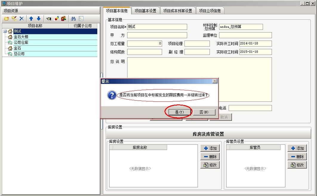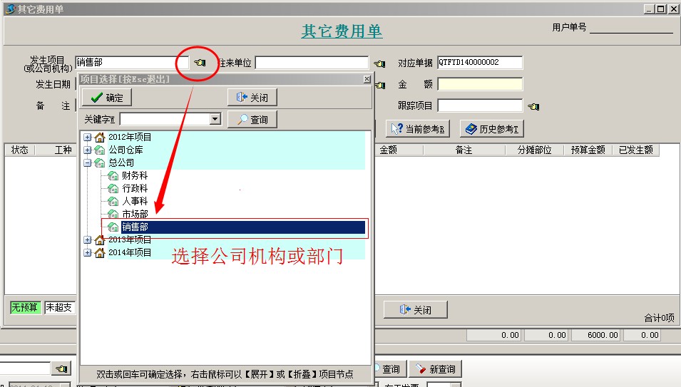 以公司的“市場部”或“銷售部”來進行前期費用的承擔。如果項目沒有中標,則前期跟蹤費用自然歸屬到該部門下,如果中標通過在【項目維護】中新建項目,從項目開拓中引入,并確認結轉費用即可。